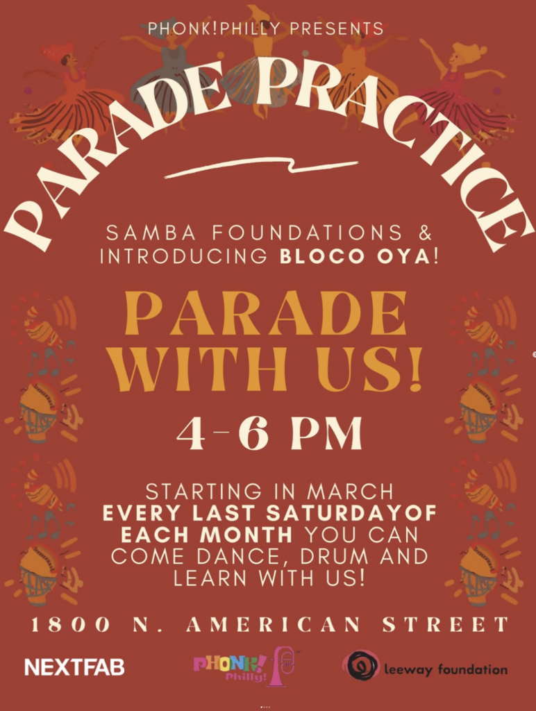 Over the following decades, she studied Brazilian percussion and dance, becoming a dance director, choreographer, and percussionist. She traveled to the Bahamas to study Junkanoo, Bomba in Loíza, Puerto Rico, and spent two weeks in New Orleans observing the Roots of Music School ahead of Mardi Gras and finding another Brazilian communities in Tamojunto NOLA and Bloco Sereira where she has spent the past three years drumming with their community Blocos during Mardi Gras festivities. This year, she will travel to Bahia, Brazil, to further her research on African Brazilian culture and traditions, tracing the connective tissue of African culture across the Americas, and learning how it could be woven into the fabric of a city like Philadelphia.
