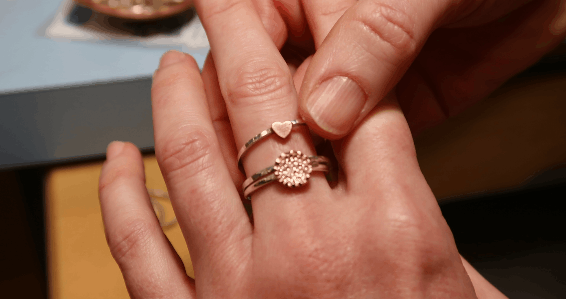 After exploring material choices, you will learn the foundational skills of jewelry making with a focus on refining your jewelry bench skills and torchwork understanding. Fabricate using the flex shaft rotary tool, and hand tools, such as the jeweler’s saw, stamps, and files. Gain confidence using the torches to solder and anneal metal. You will then complete a basic stone setting on a sterling silver ring to finish off the class series. Create a bangle, several sterling silver rings, and a stone-set ring along the way. By the end of this series, walk away with the experience and guidance to develop your next sparkling jewel to add to your stack or gift to friends!